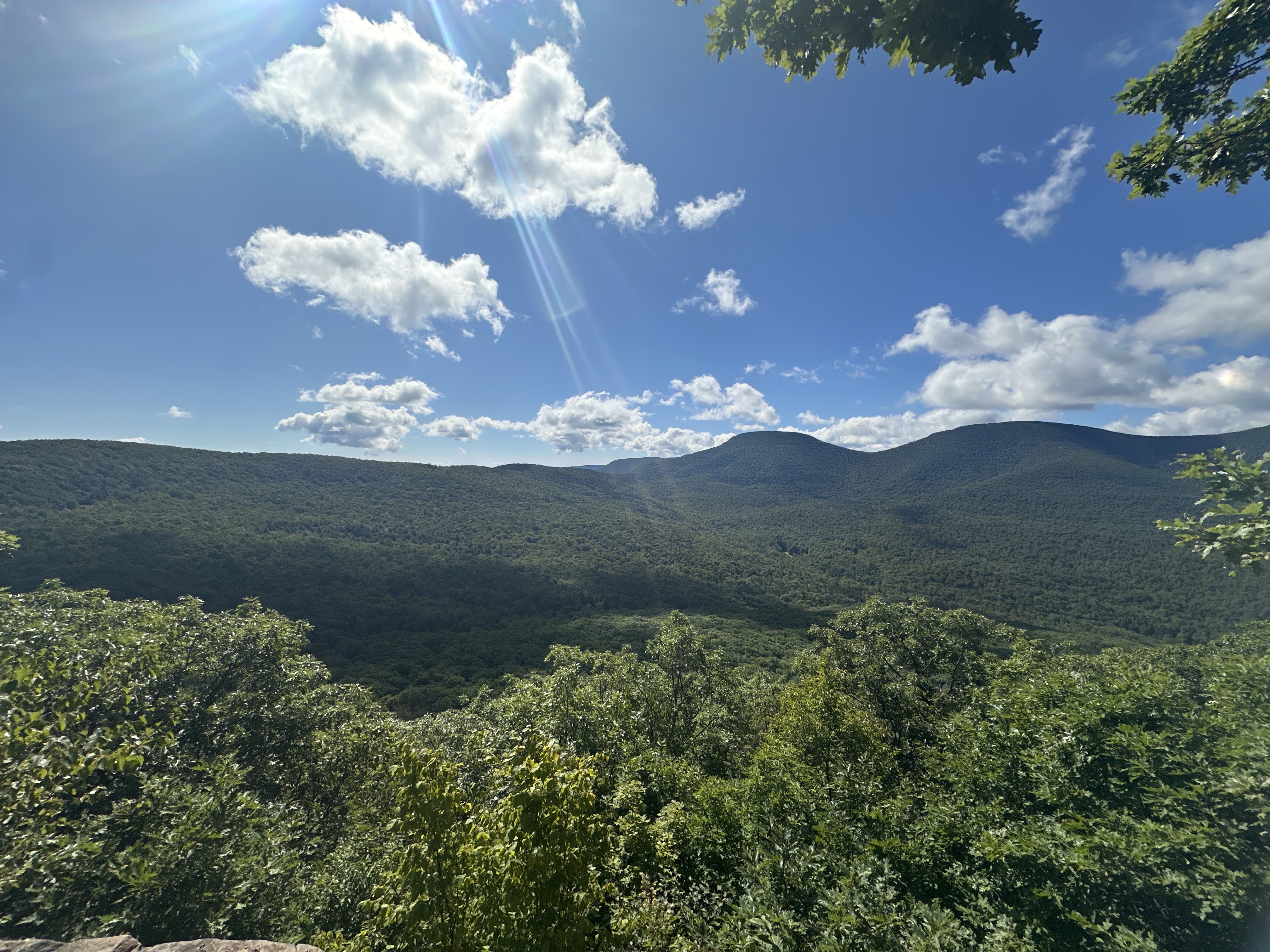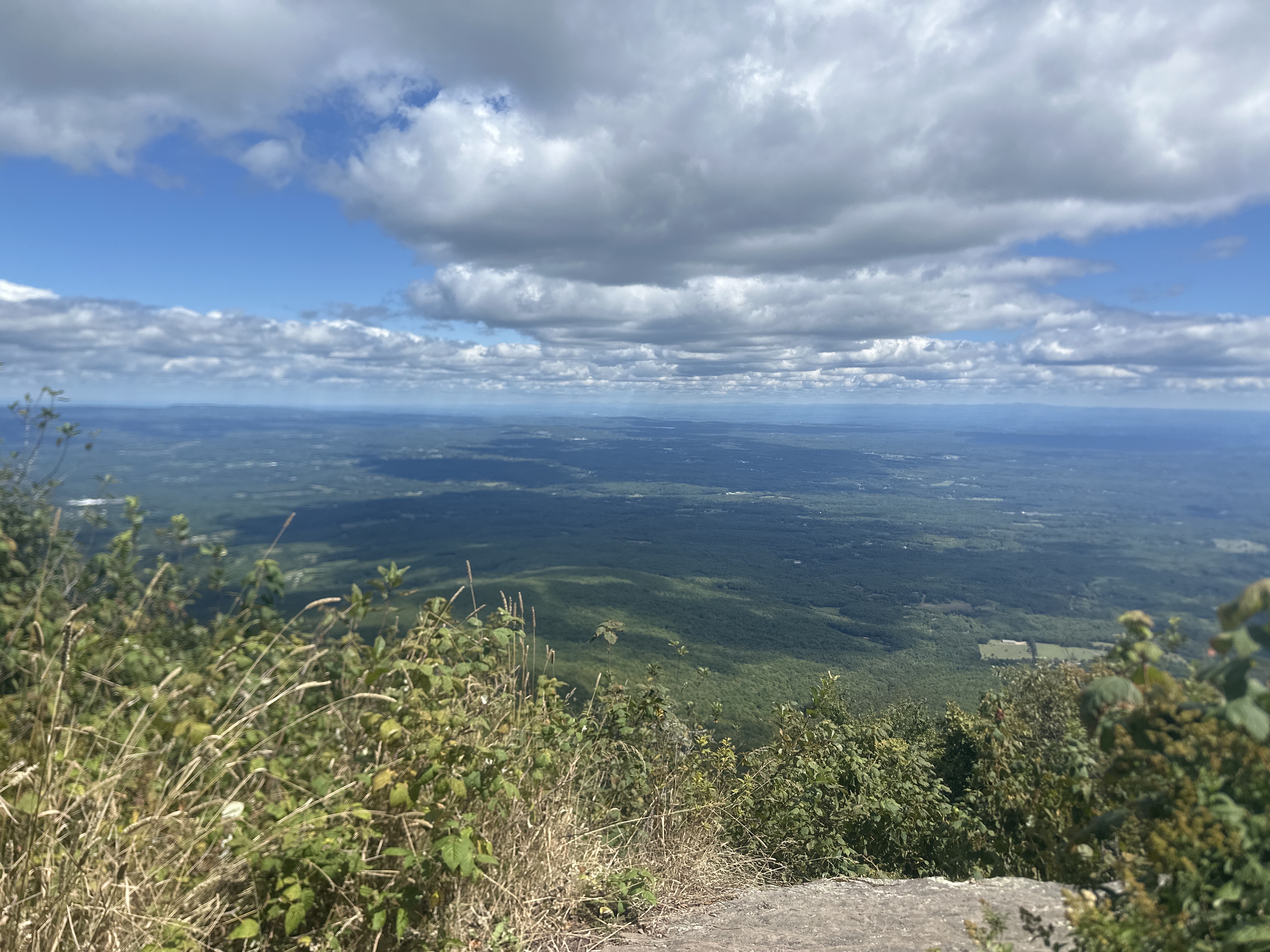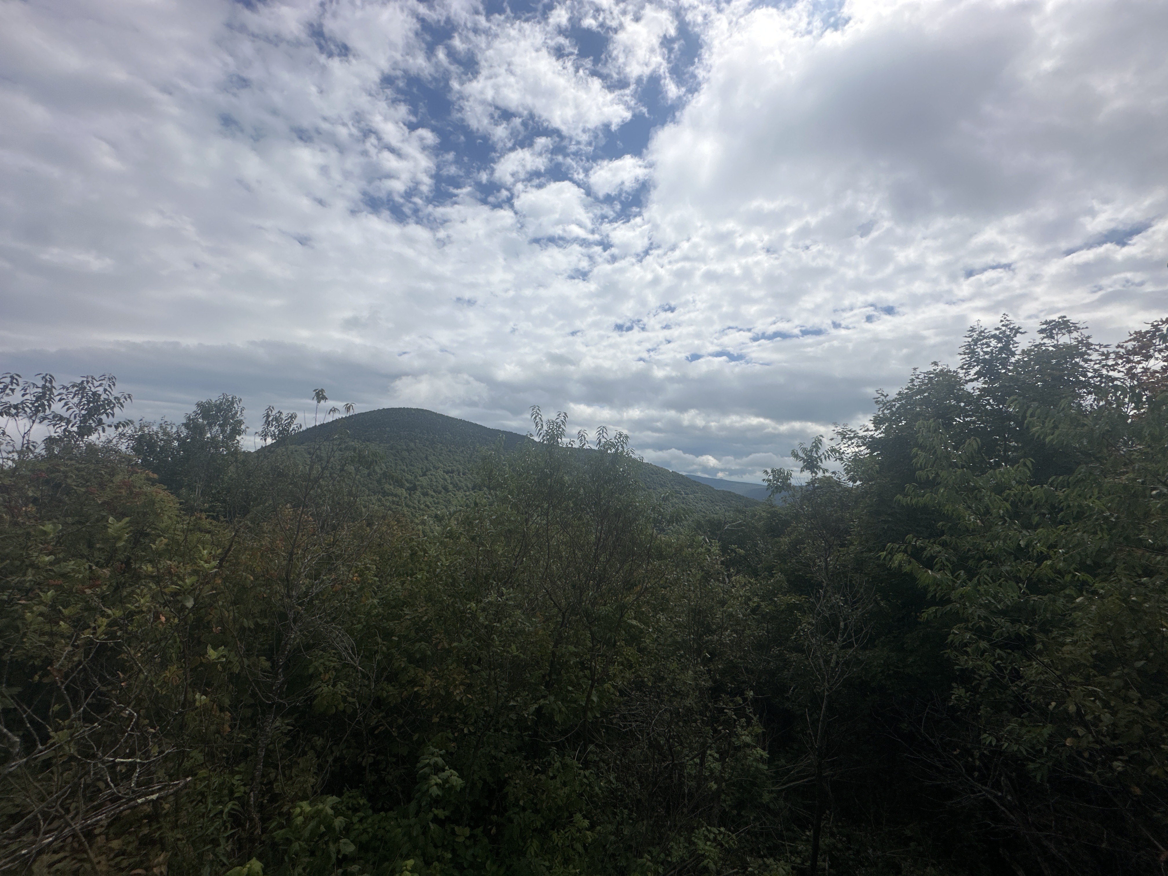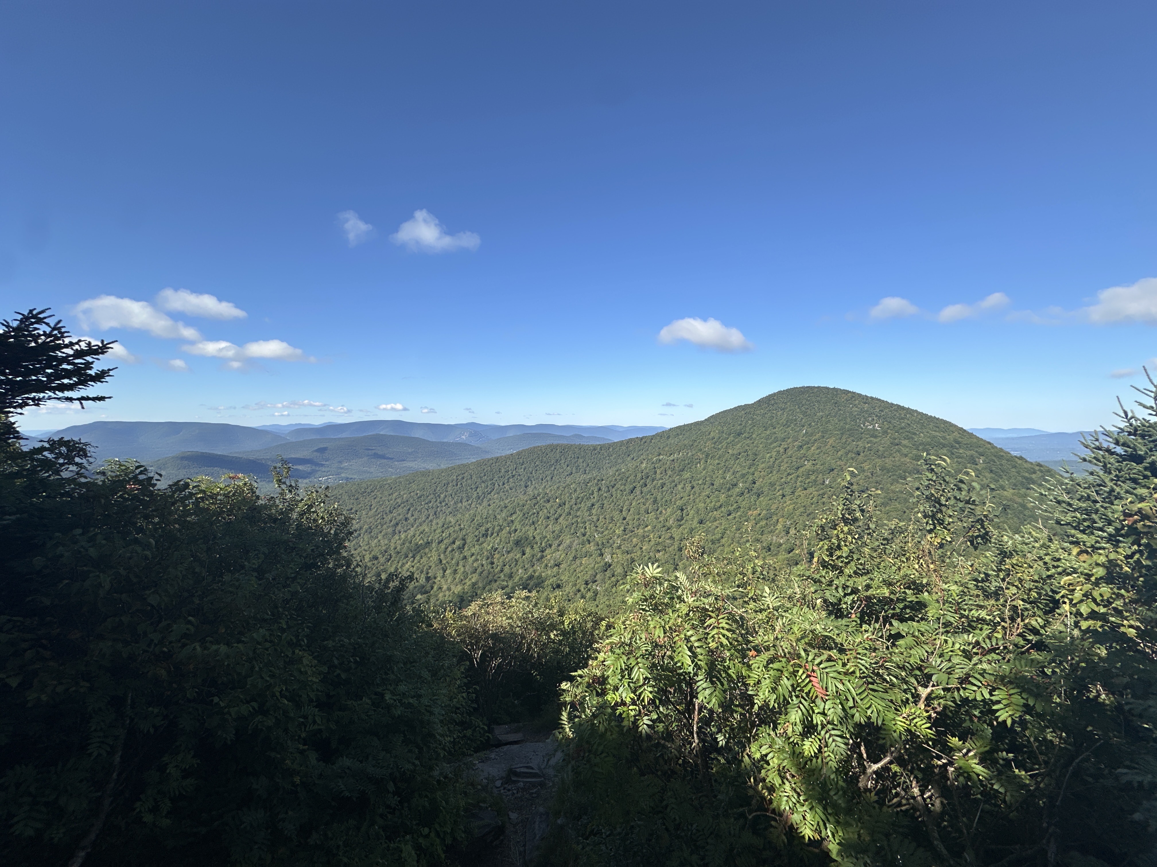 There's a little clearing at the summit of Thomas Cole, with a rock that was perfect for a short lunch break. At this point most of the climbing is done, and as a nice reward, you also get some views on the way to Black Dome.